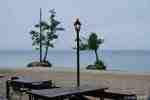 Als wir losfuhren, begann es zu regnen, nicht stark, aber nass 😉 Und als wir dann an dem Campingplatz neben der berühmten Pyla-Düne ankamen, mussten wir feststellen, dass der im Internet so einladend angepriesene Campingplatz zum Großteil mit (unbelegten) „mobilhomes“ belegt war und für die paar Camper und Womo/Wowa-Benutzer nur ein paar Plätze im hinteren Teil (mit herrlichem Blick auf die vorbeiführende D218 oder mit volltönender Nachbarschaft zum geräuschvollen Kühlaggregat der CP-eigenen Epicerie) vorhanden waren. Der Stil im CP-eigenen Restaurant erweckte bei uns dann nur noch den Eindruck von Hochsaisontourismus (auch wenn kaum Gäste da waren), dass wir uns schleunigst nach einer Alternative umsahen: Und die tat sich im Hinterland auf, in Cazaux, einer kleinen Gemeinde an dem größten der küstennahen Seen.