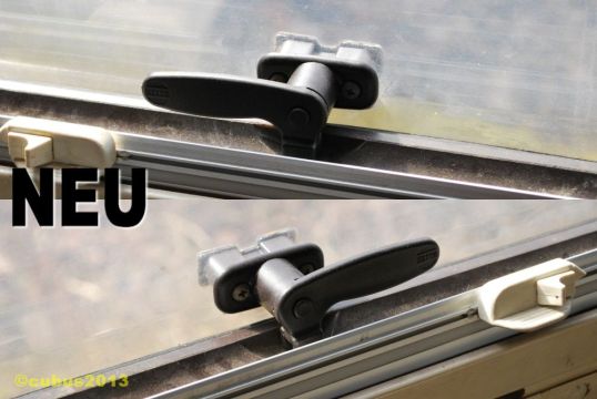 Zum Glück gab’s die Fensterriegel noch als Ersatzteile (trotz 22 Jahren Alter)